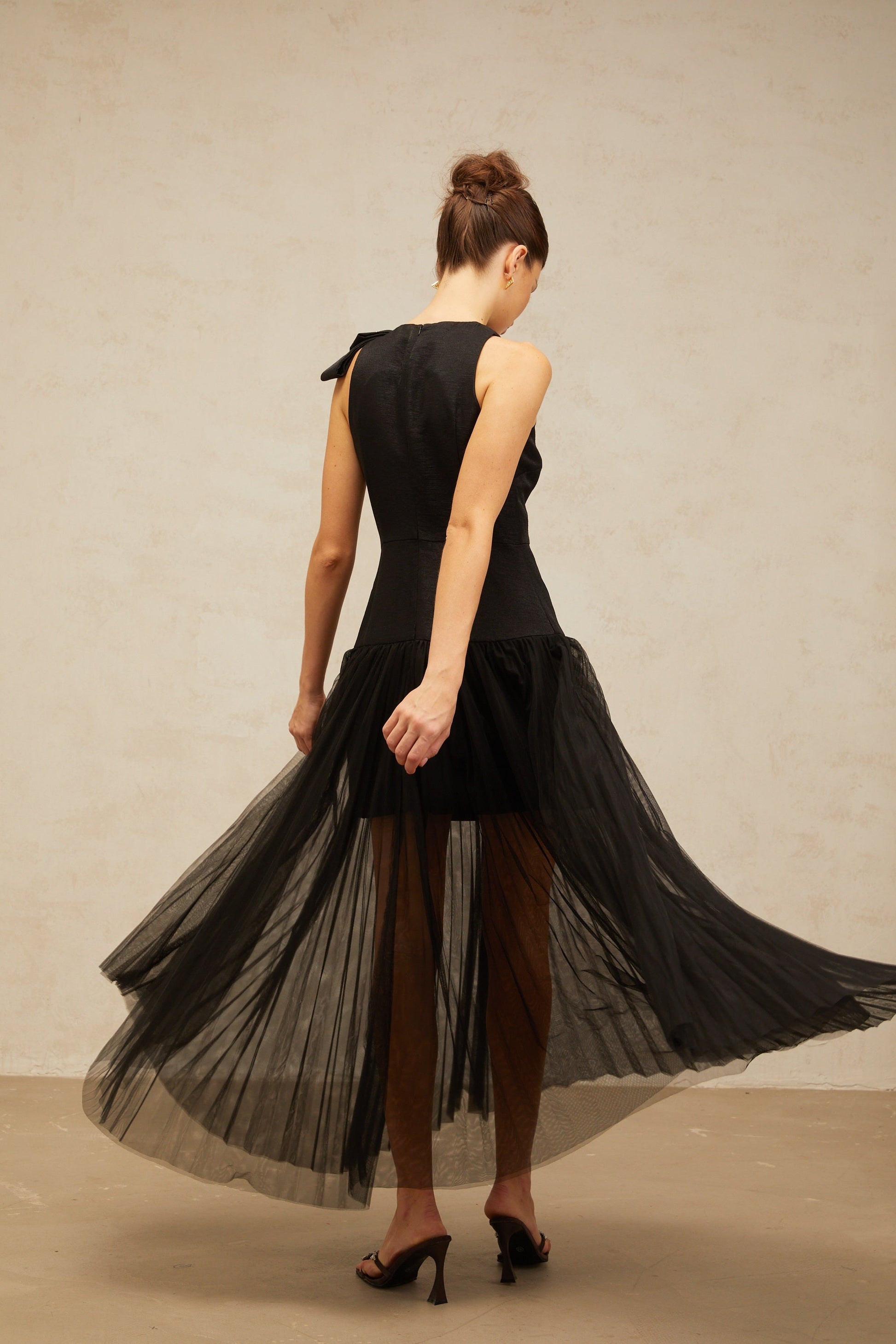 Thérèse bowknot tulle-panelling midi dress in Black