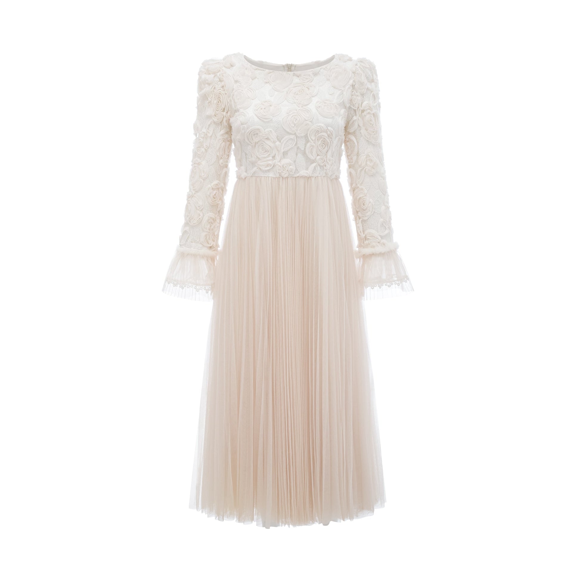 Thibaulte pleated lace-floral midi dress
