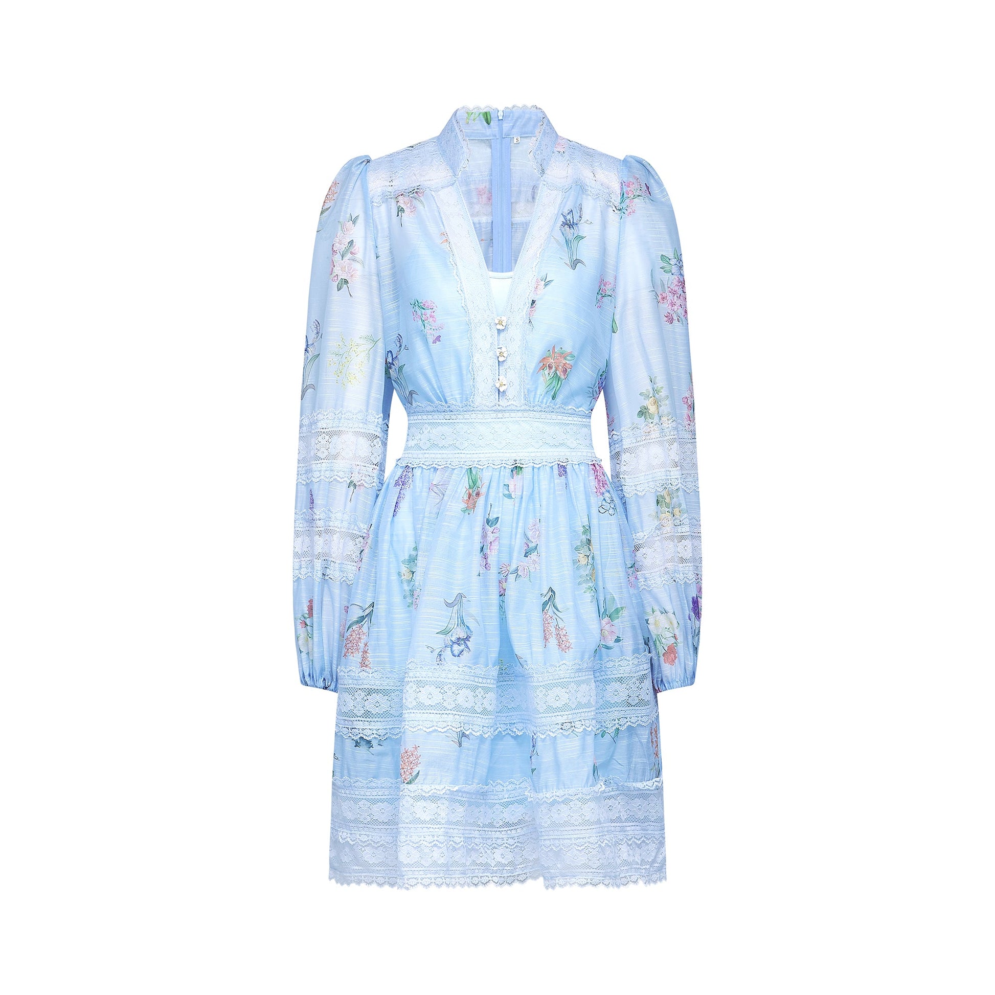 Titania floral-print lace-detail mini dress