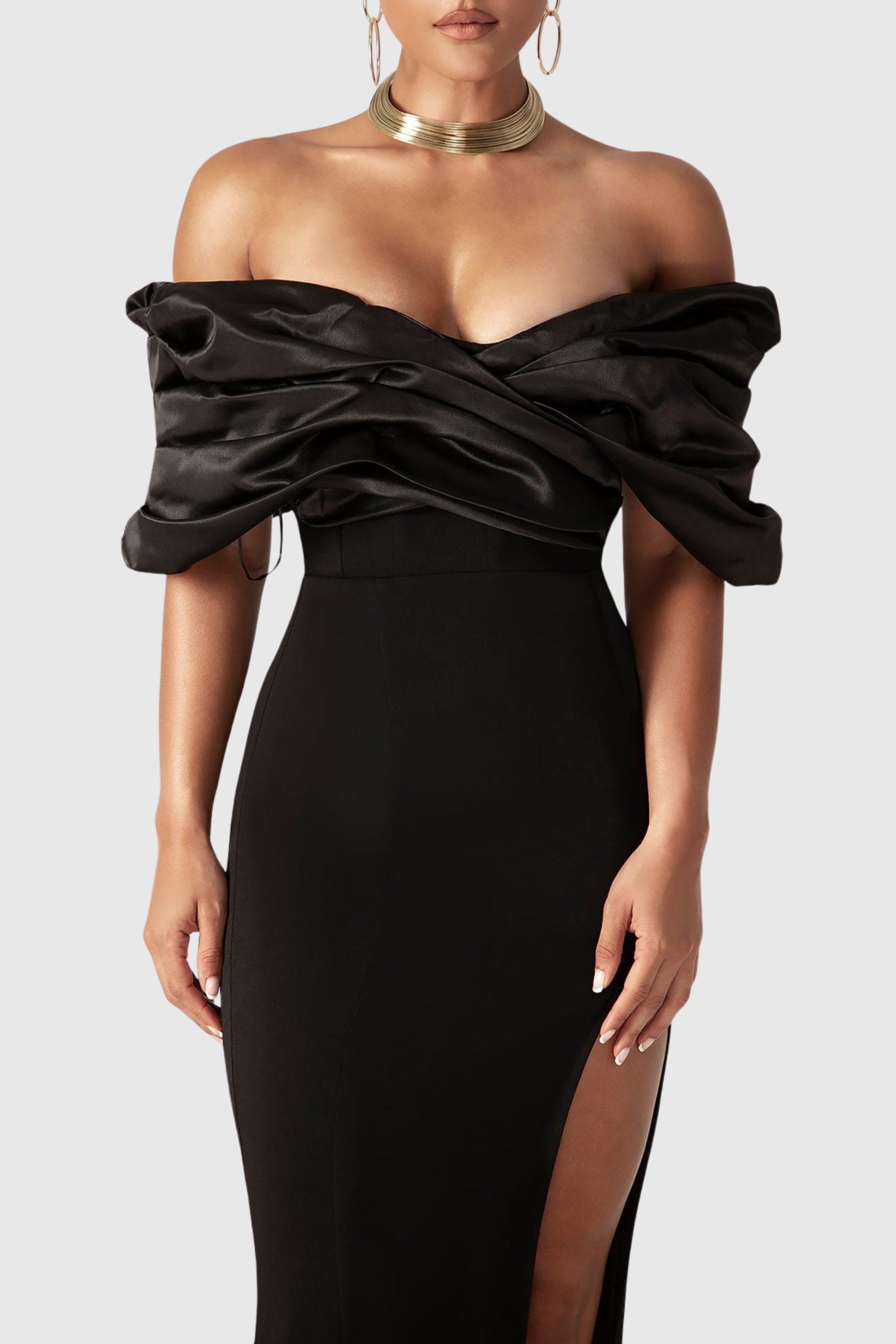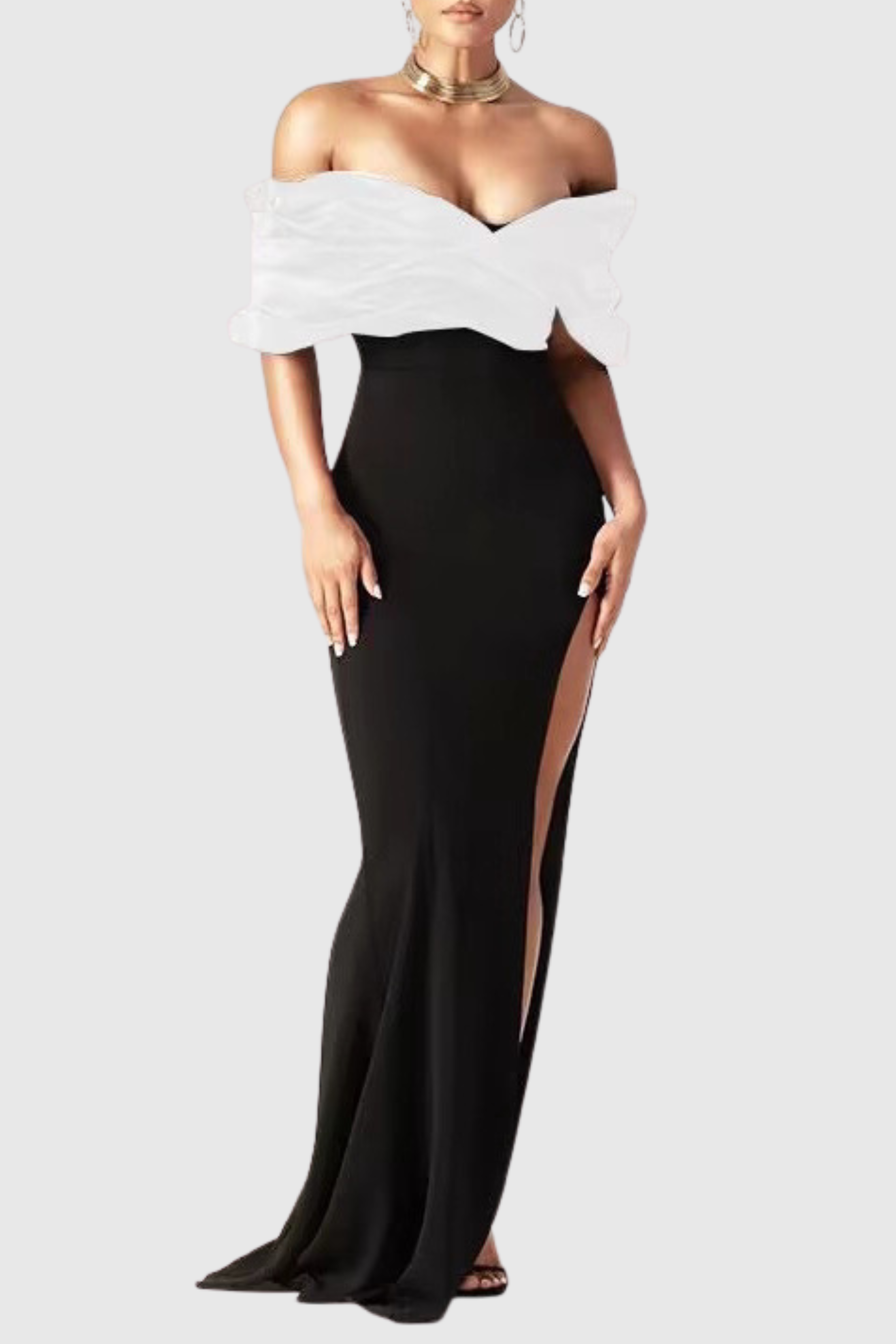 Tonanta Off Shoulder Split Maxi Bandage Dress