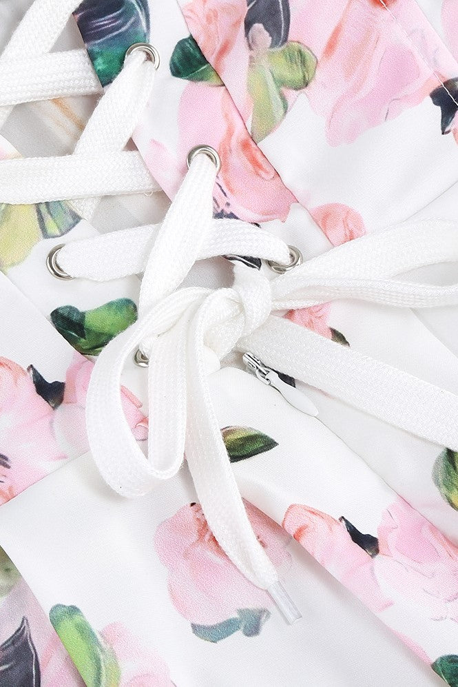 The Trinity Printed Strapless Maxi Dress is floor maxi long length, designed with a heart-shaped neckline and no straps. The skirt of the gown has a high front slit and a long train. The bodice has a lace-up corset.