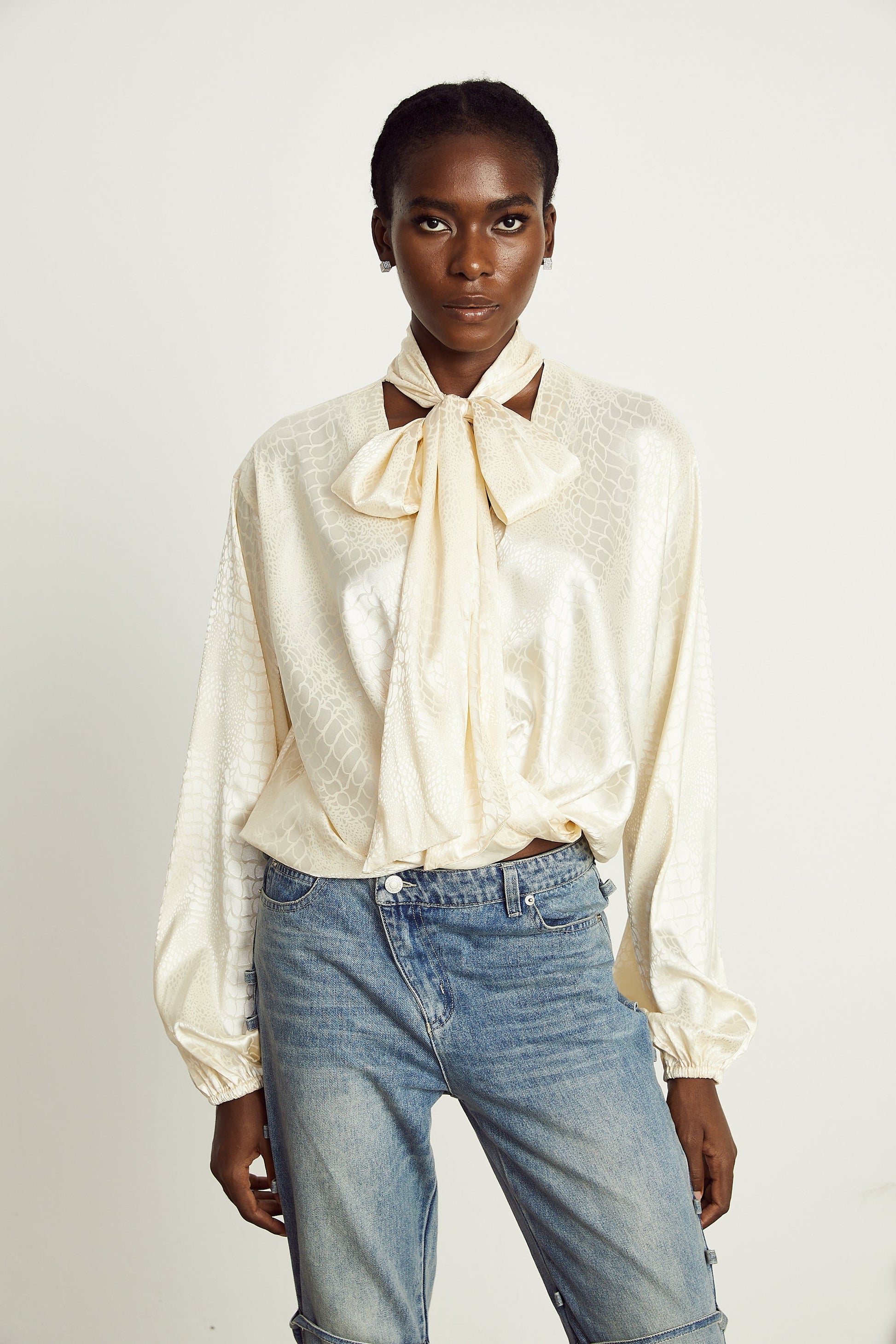Ulrike crocodile-effect wraparound blouse