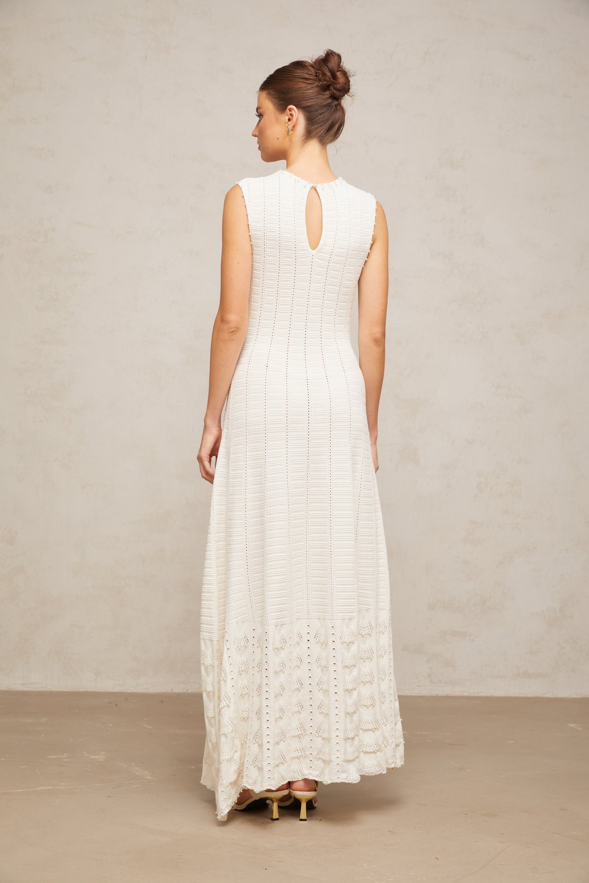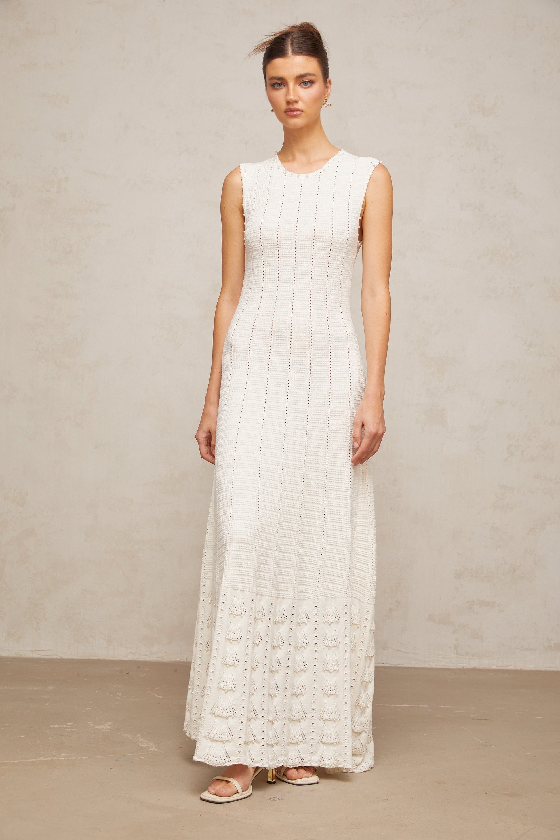 Urbaine white faux-pearl pointelle-knit maxi dress