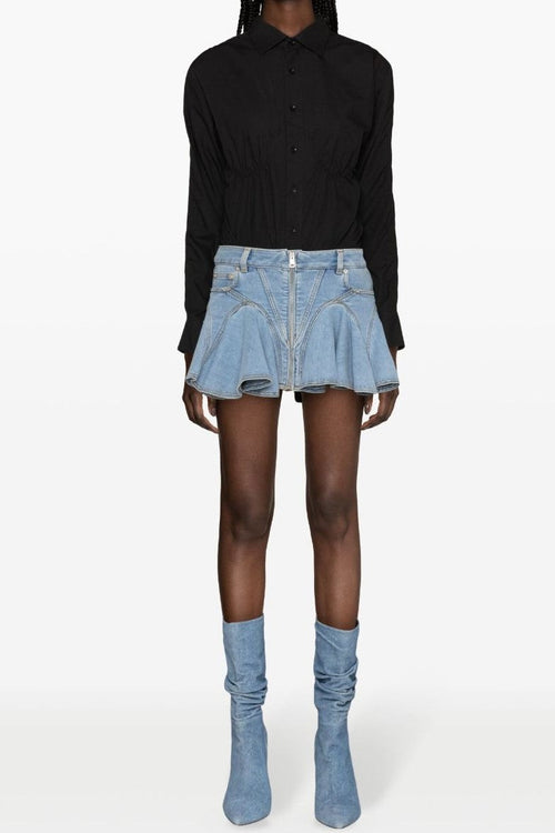 Get ready to rock this playful Vera Ruffle Denim Mini Skirt. With its vibrant color and flirty ruffle design, this skirt adds a fun twist to your wardrobe. Perfect for any occasion, from a night out to a casual day look.