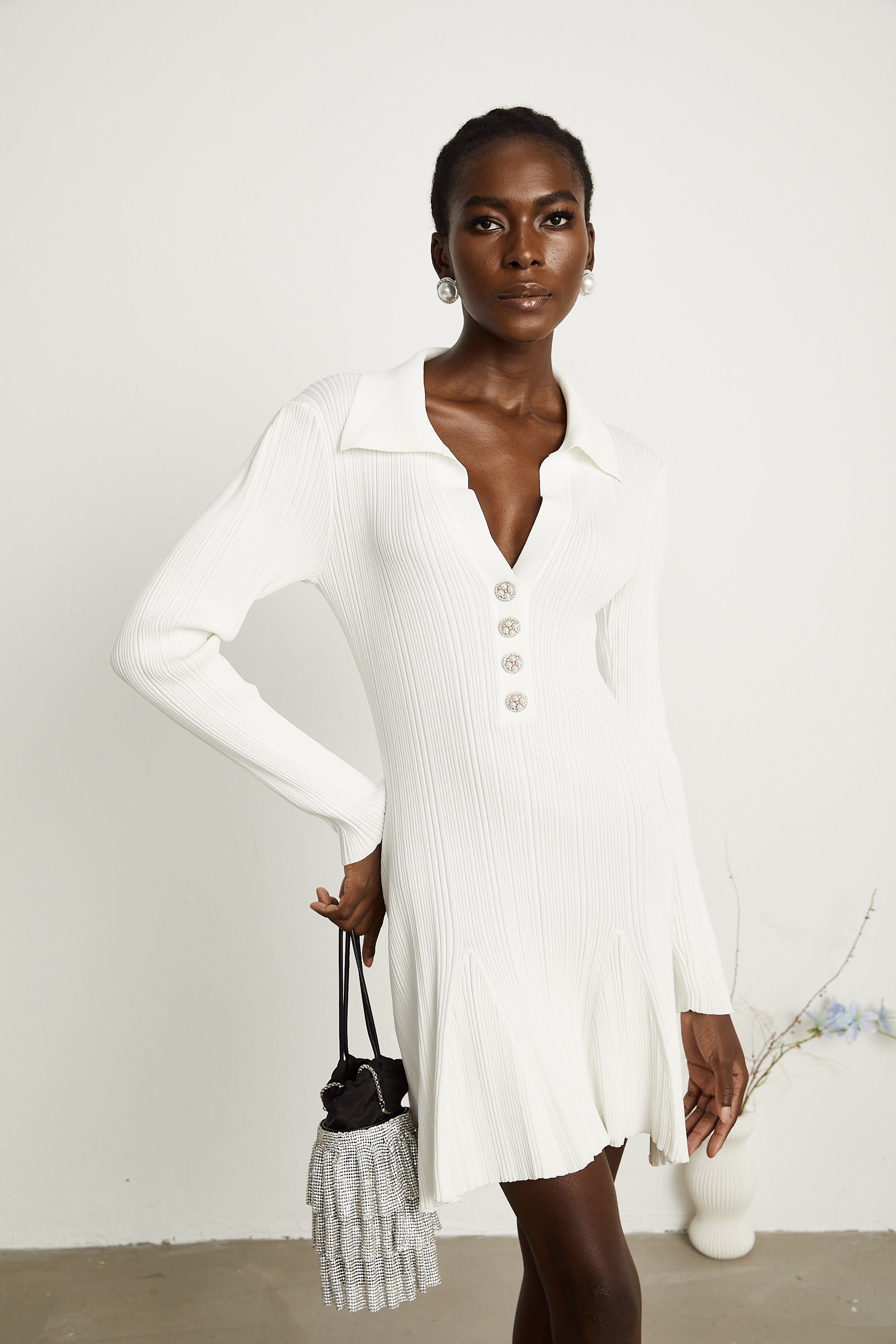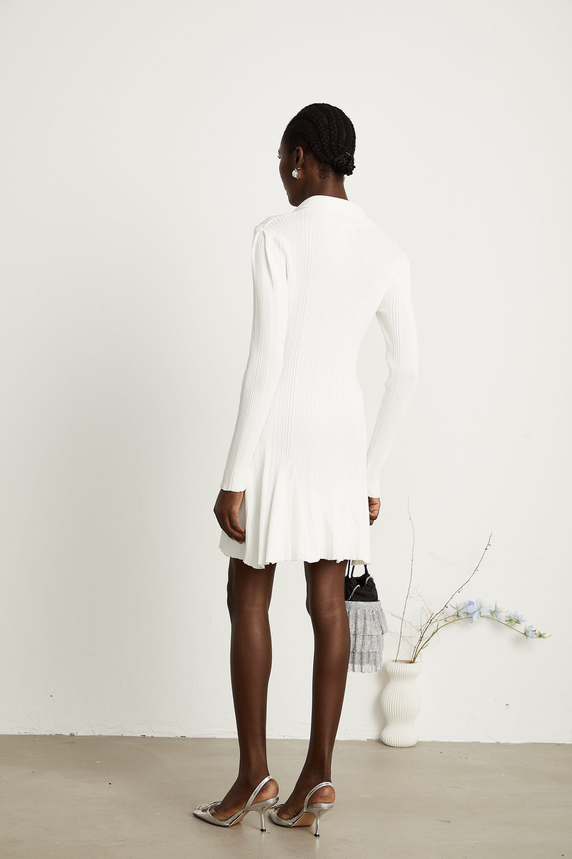 Véronique white ruffle knit mini dress