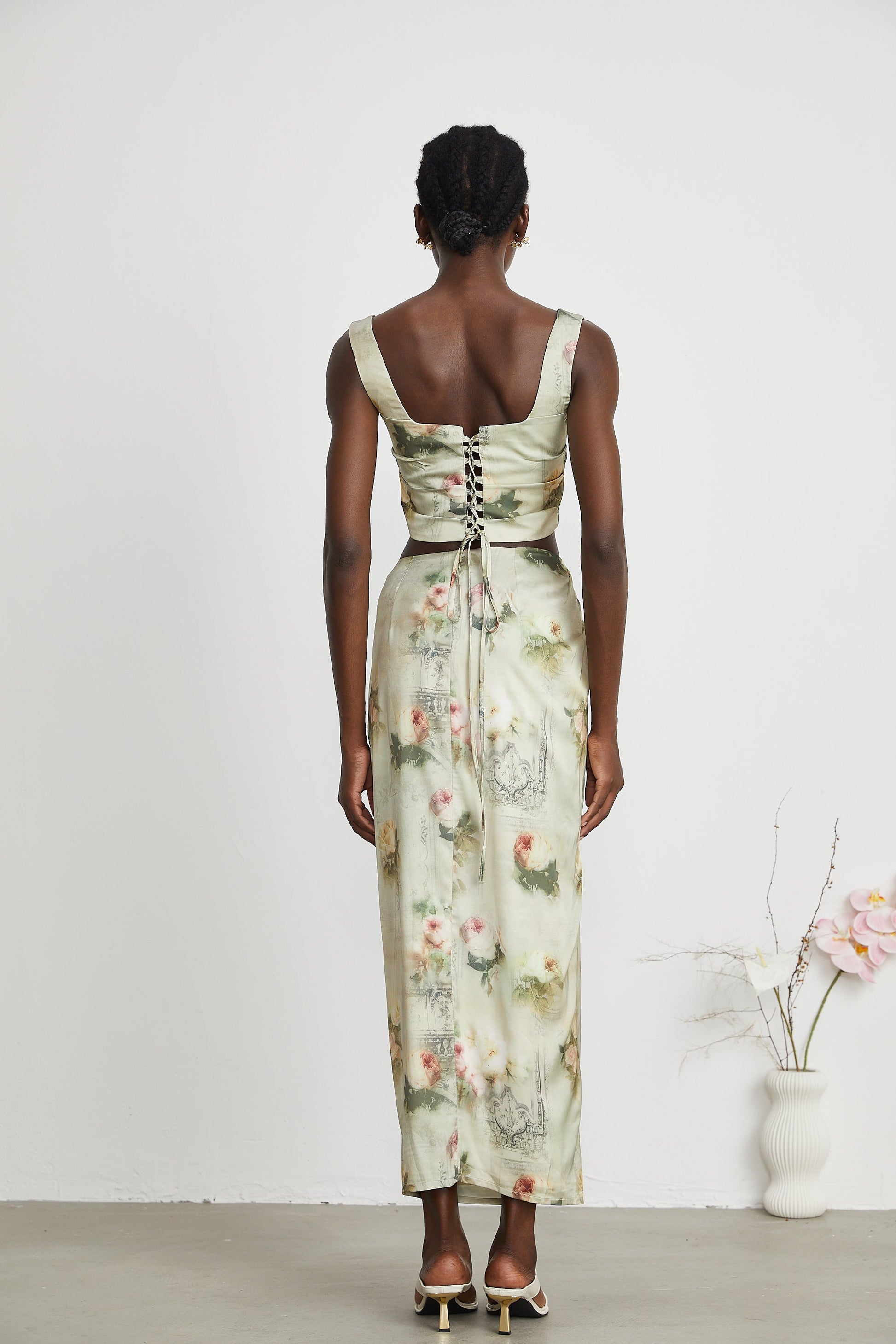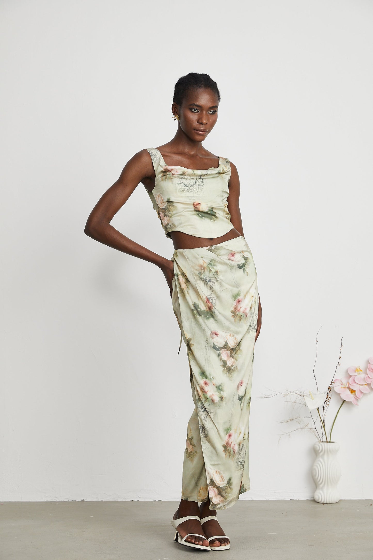 Viviane floral-print top & skirt matching set