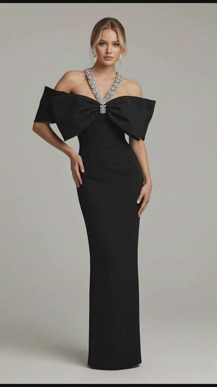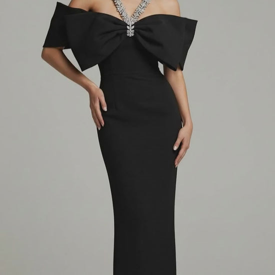 Sloan Halter Diamond Off-The-Shoulder Bandage Maxi Dress