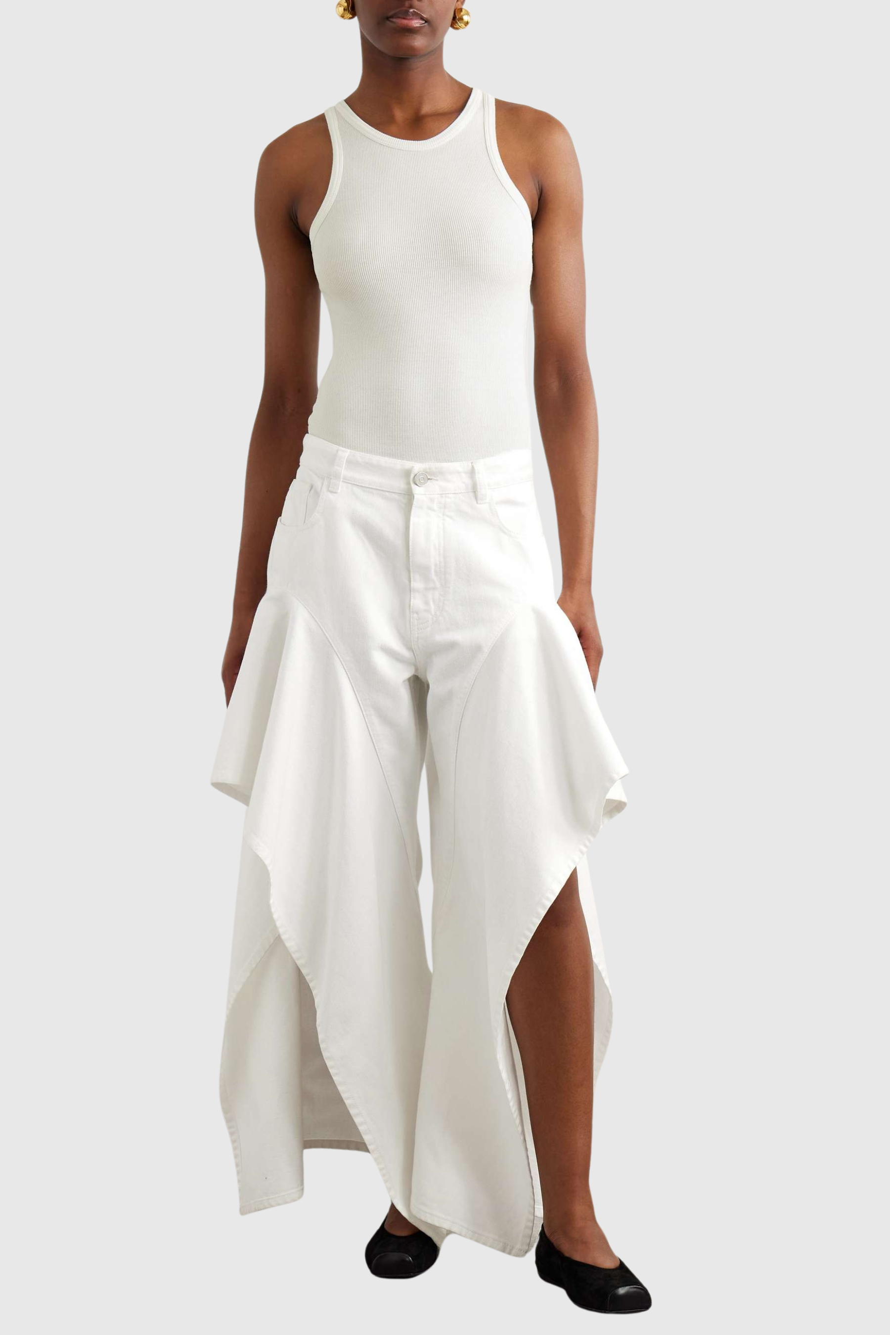 Elevate your wardrobe with the Yolita Ruffle Slit Jeans, where classic denim meets refined detailing. Featuring elegant ruffle accents along a subtle slit, these jeans offer a graceful silhouette that enhances your natural shape. Crafted for both comfort and style, they seamlessly transition from day to evening wear, making them a versatile addition to any sophisticated closet.