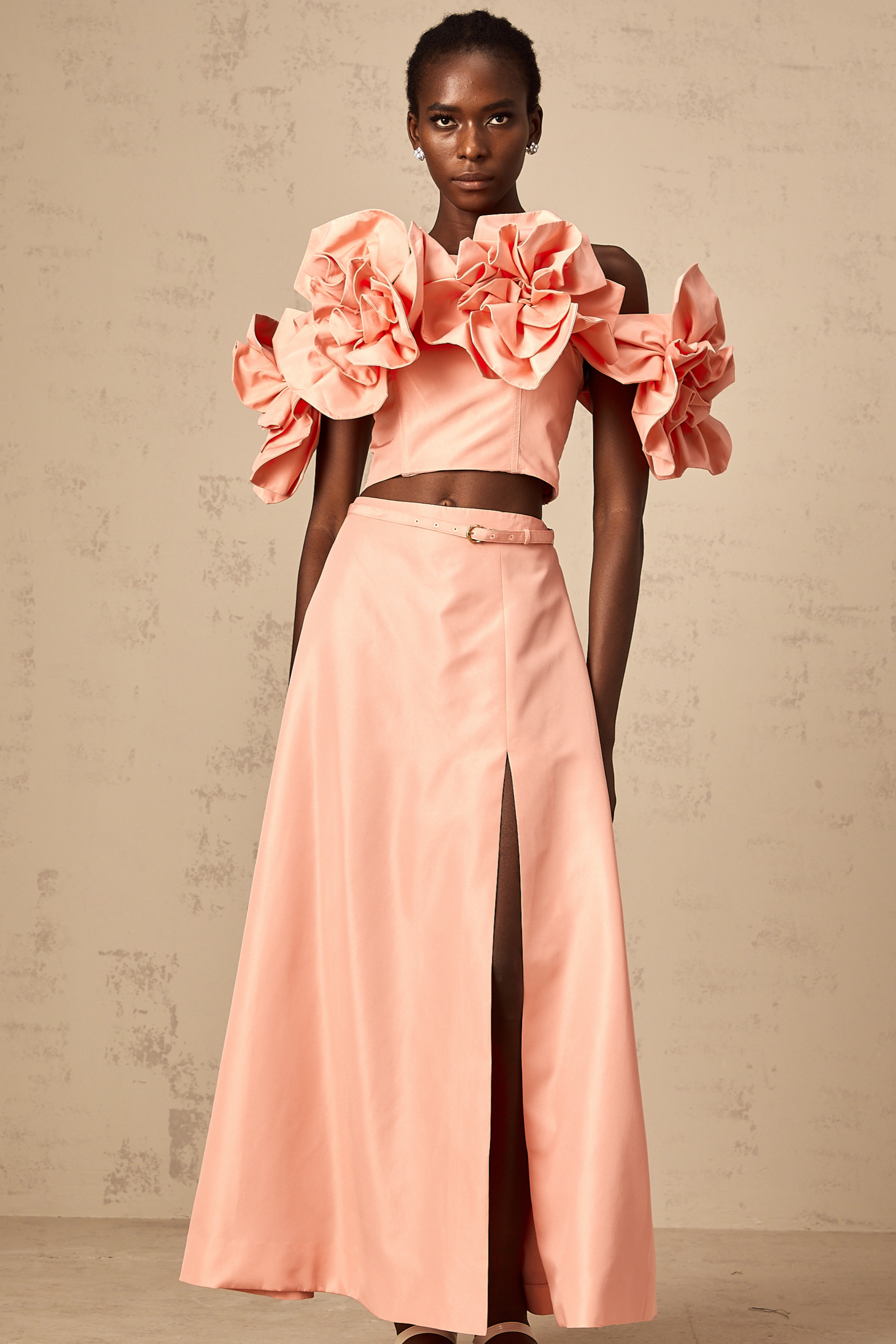 Yvette pink floral-appliqué top & skirt matching set