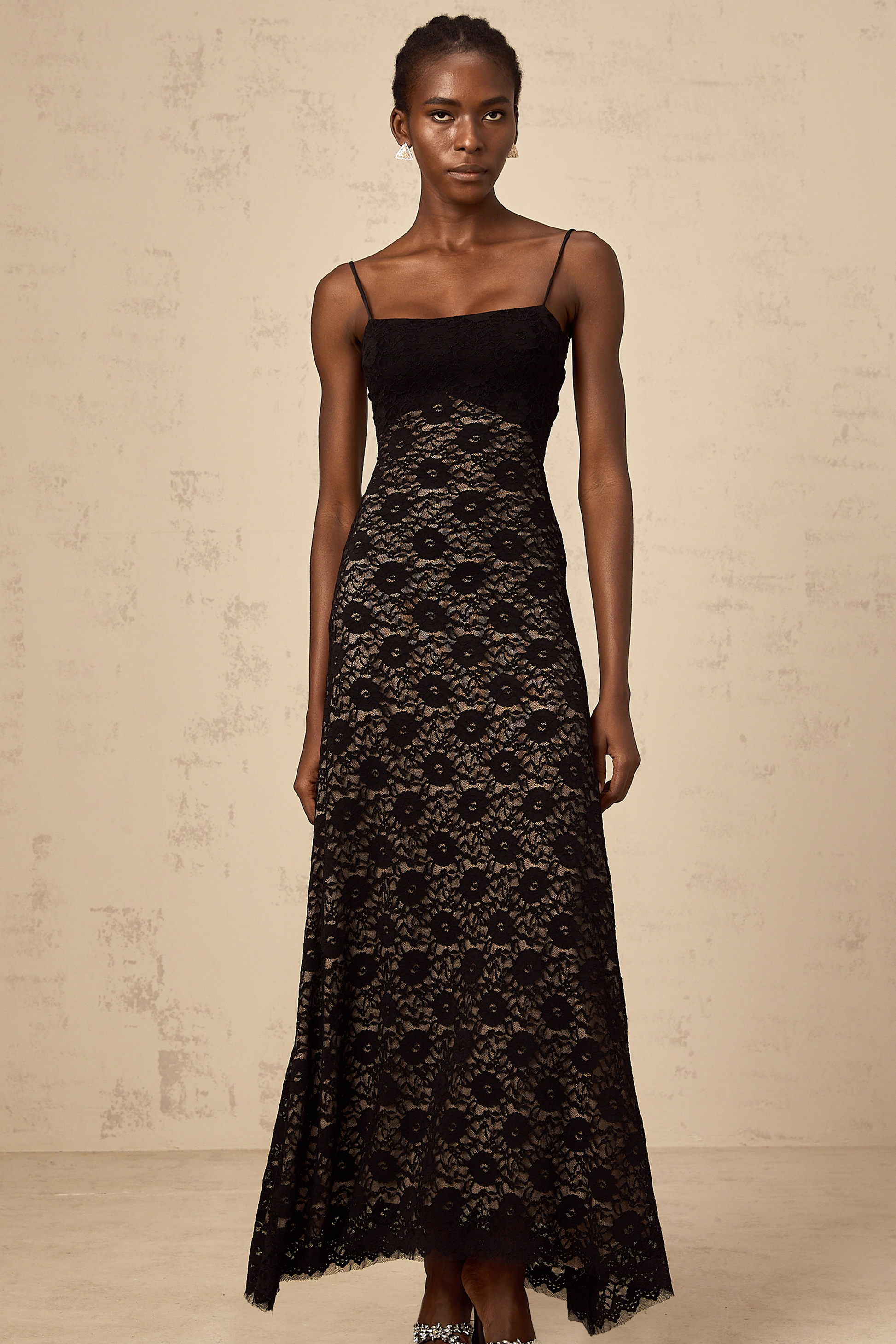 Zélie black open-back floral-lace maxi dress