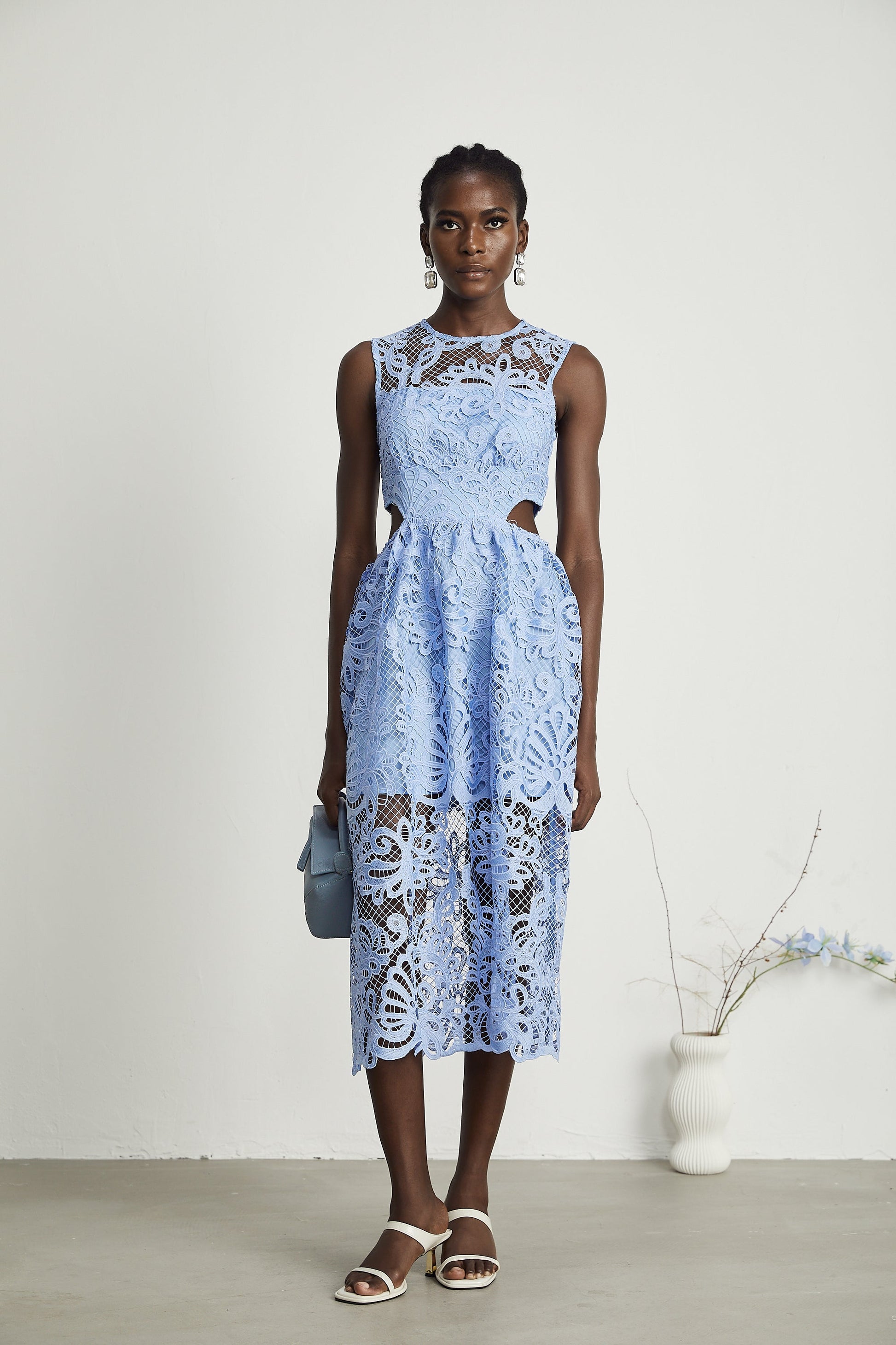 Zoë floral-embroidered semi-sheer midi dress