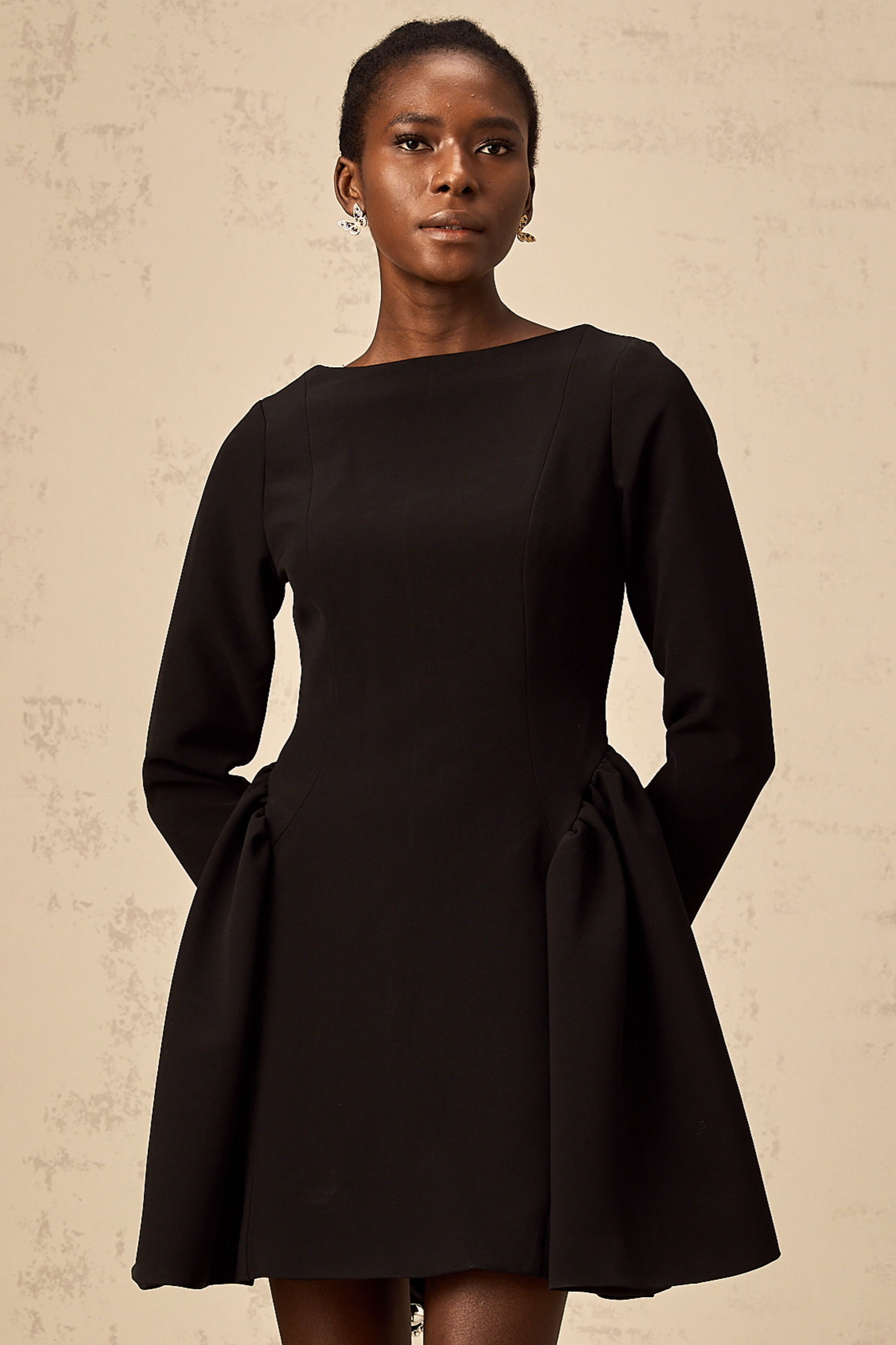 Zora black long-sleeve flared mini dress